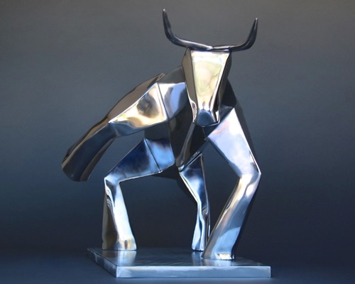 Amos appreciates the coldness and lifelessness of the steel as it allows him to mold it and bring it to life. A key component for Amos is kinetic energy, is this kinetic energy that is insidiously found in all his pieces, this makes his work so unique and fascinating. Take his bull for example (pictures below) while not moving, it clearly posses preserved energy to propel it at any given moment for movement. By looking at it we feel we are only seconds away from seeing this majestic bull take speed and charge. Equally impressive is the fact that, this bull used to be one single giant piece of metal but thanks to Amos hands it has now come to life to delight our eyes as we stand in front of it in awe.