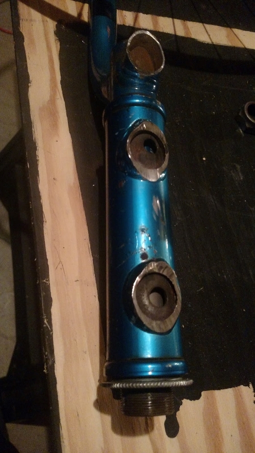 I then went with the second option of mounting to steerer tube face where the fork tine had attached. I grinded surfaces of fork /prepped for welding.