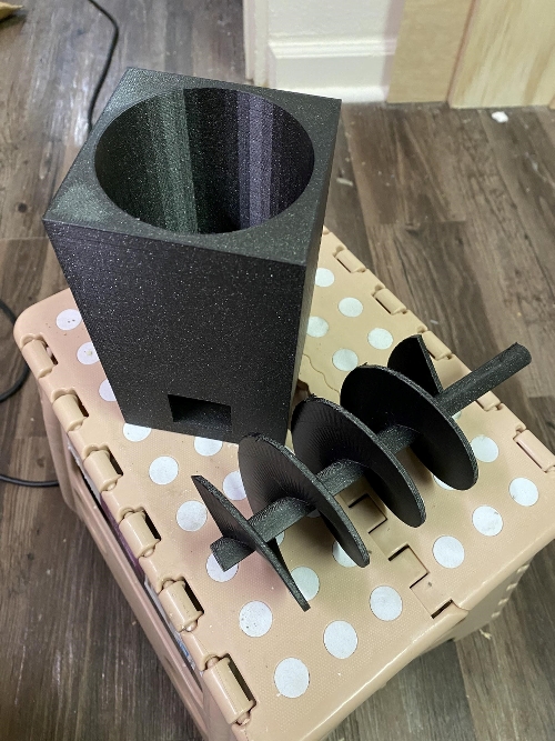 The second problem that came to light was the failure of the loading system as the solenoid would not kick the steel ball bearing up high enough to load the ball. It sort of works when I used a plastic ball bearing but the plastic ball bearing did not have quite enough mass to consistently trigger the bumper system. In order to combat this I am going to try building a system based around an archimedes screw and a stepper motor. This adds some complexity but It also saves me significant time troubleshooting and finding the right pitch where everything plays nice. While writing this I made a prototype of the archimedes screw that I was intending to use, while the concept worked perfectly there was a problem in that the system would just be too big to be viable. Upon discussing the problem further with Bryan We came up with the solution to use silicon nitride bearings as they are half the mass of the stainless steel and work flawlessly in the loader.